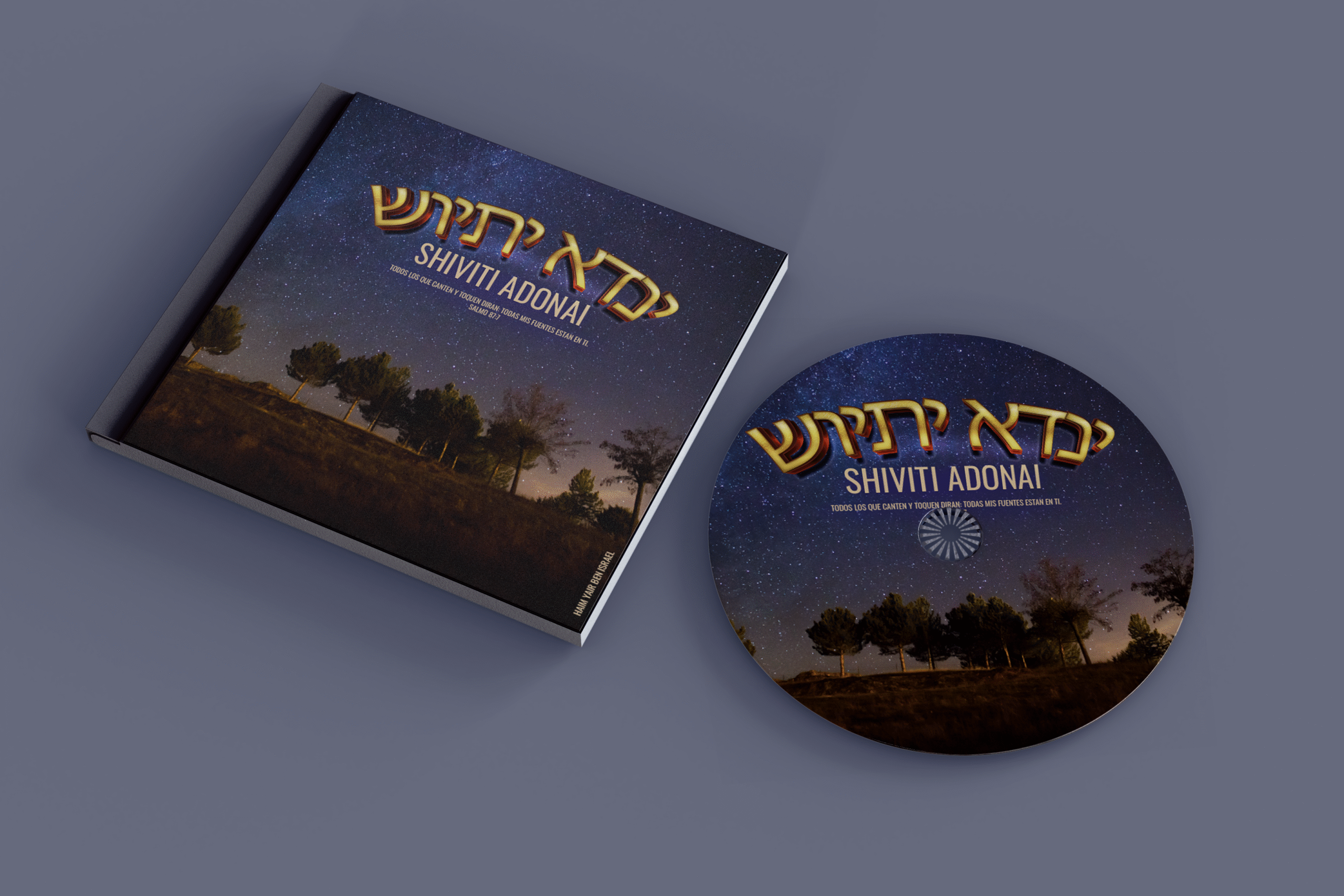Mi trabajo consistió en diseñar la portada de un CD de música hebrea judía, utilizando elementos visuales que representan la cultura, la historia y la espiritualidad de este pueblo. Me inspiré en la cultura, los cantos, el paisaje, y los combiné con colores cálidos y texturas que evocan el desierto de Israel. El resultado es una portada que transmite la identidad y la diversidad de la música hebrea judía, así como su riqueza y su belleza.